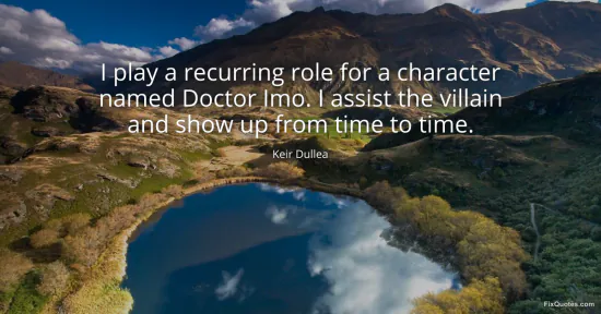 Dullea, Keir. "I play a recurring role for a character named Doctor Imo. I assist the villain and show up from time to time." FixQuotes. January 17, 2026. https://fixquotes.com/quotes/i-play-a-recurring-role-for-a-character-named-81291/.