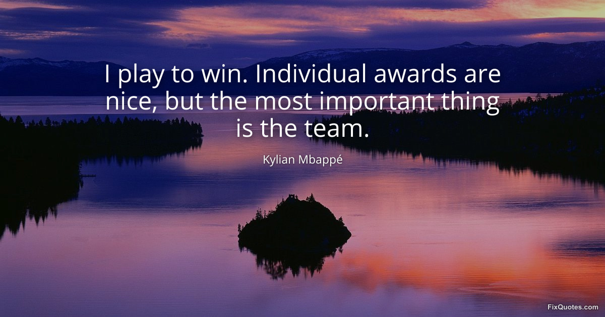 Mbappé, Kylian. (2026, January 30). I play to win. Individual awards are nice, but the most important thing is the team. FixQuotes. https://fixquotes.com/quotes/i-play-to-win-individual-awards-are-nice-but-the-184764/