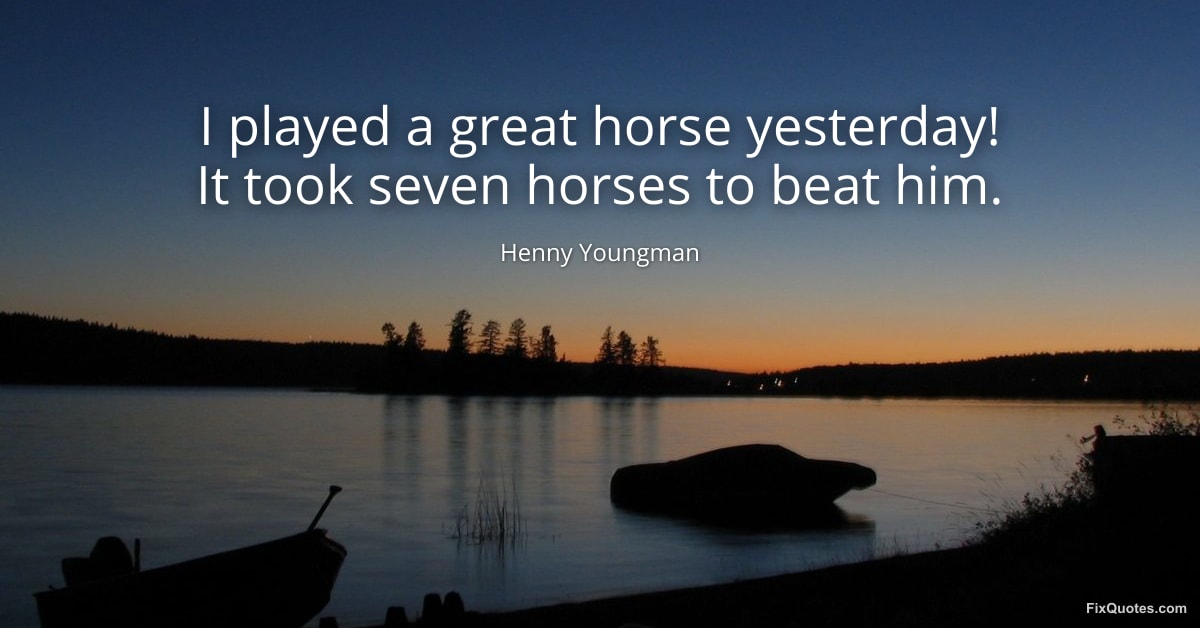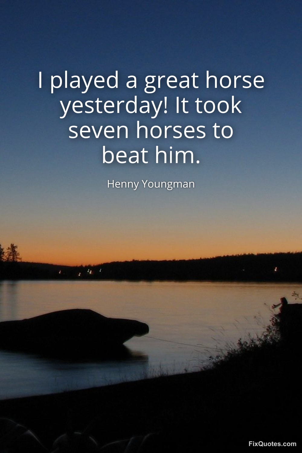 Youngman, Henny. (2026, January 18). I played a great horse yesterday! It took seven horses to beat him. FixQuotes. https://fixquotes.com/quotes/i-played-a-great-horse-yesterday-it-took-seven-14621/