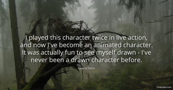 Davis, Geena. "I played this character twice in live action, and now I've become an animated character. It was actually fun to see myself drawn - I've never been a drawn character before." FixQuotes. January 17, 2026. https://fixquotes.com/quotes/i-played-this-character-twice-in-live-action-and-62199/.