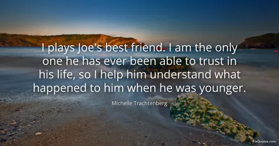 Trachtenberg, Michelle. (2026, January 16). I plays Joe's best friend. I am the only one he has ever been able to trust in his life, so I help him understand what happened to him when he was younger. FixQuotes. https://fixquotes.com/quotes/i-plays-joes-best-friend-i-am-the-only-one-he-has-89008/