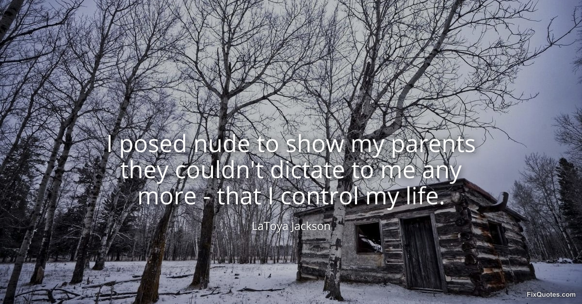 Jackson, LaToya. (2026, January 16). I posed nude to show my parents they couldn't dictate to me any more - that I control my life. FixQuotes. https://fixquotes.com/quotes/i-posed-nude-to-show-my-parents-they-couldnt-111867/