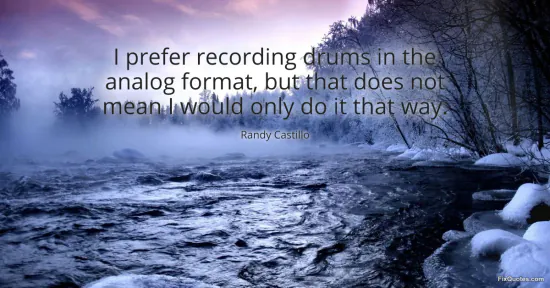 Castillo, Randy. (2026, January 16). I prefer recording drums in the analog format, but that does not mean I would only do it that way. FixQuotes. https://fixquotes.com/quotes/i-prefer-recording-drums-in-the-analog-format-but-105757/