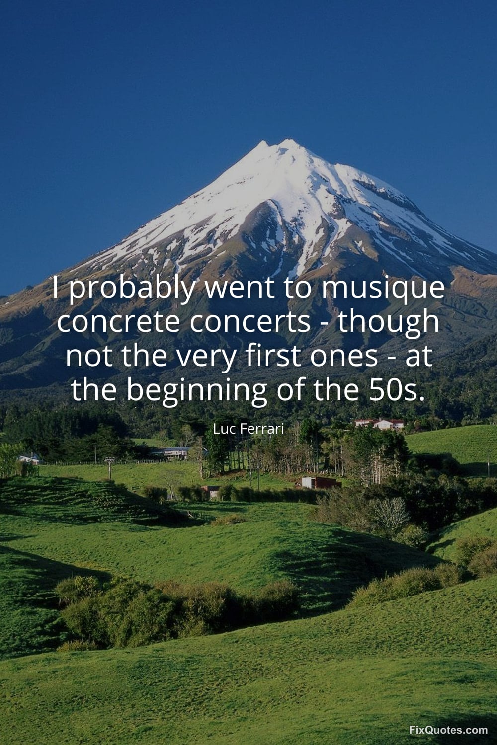 Ferrari, Luc. (2026, January 15). I probably went to musique concrete concerts - though not the very first ones - at the beginning of the 50s. FixQuotes. https://fixquotes.com/quotes/i-probably-went-to-musique-concrete-concerts-168019/