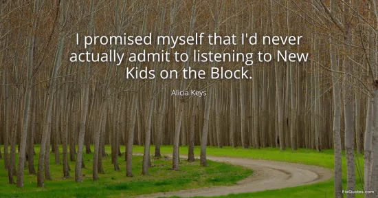 Keys, Alicia. (n.d.). I promised myself that I'd never actually admit to listening to New Kids on the Block. FixQuotes. https://fixquotes.com/quotes/i-promised-myself-that-id-never-actually-admit-to-138647/