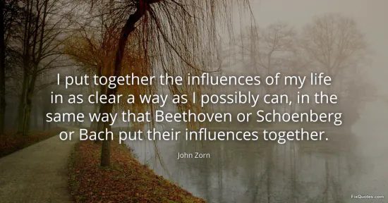 Zorn, John. (2026, January 17). I put together the influences of my life in as clear a way as I possibly can, in the same way that Beethoven or Schoenberg or Bach put their influences together. FixQuotes. https://fixquotes.com/quotes/i-put-together-the-influences-of-my-life-in-as-80929/