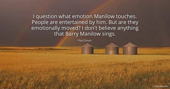 Simon, Paul. "I question what emotion Manilow touches. People are entertained by him. But are they emotionally moved? I don't believe anything that Barry Manilow sings." FixQuotes. January 16, 2026. https://fixquotes.com/quotes/i-question-what-emotion-manilow-touches-people-92854/.