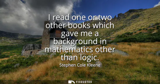 Stephen Cole Kleene speaks with a dry modesty that reveals a great deal about the formation of a foundational thinker. Trained at a time when logic was crystallizing into a rigorous mathematical discipline, he suggests that most of his formal education lay squarely within logic, and that he had to supplement it with minimal but carefully chosen forays into the broader mathematical landscape. The phrase "one or two other books" is disarming and strategic: it implies both the intensity of his concentration on logic and the usefulness of just enough outside exposure to ground his work in mainstream mathematics.