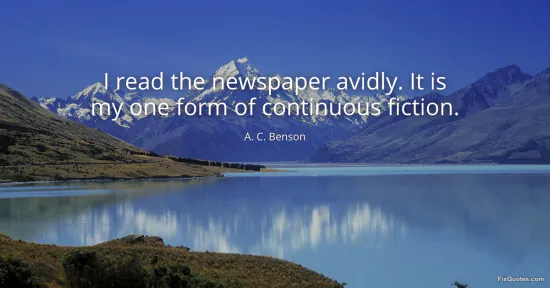 Benson, A. C. "I read the newspaper avidly. It is my one form of continuous fiction." FixQuotes. January 17, 2026. https://fixquotes.com/quotes/i-read-the-newspaper-avidly-it-is-my-one-form-of-39075/.