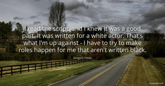 "I read the script, and I knew it was a good part. It was written for a white actor. That's what I'm up against - I have to try to make roles happen for me that aren't written black"