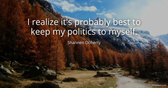 Doherty, Shannen. (2026, January 17). I realize it's probably best to keep my politics to myself. FixQuotes. https://fixquotes.com/quotes/i-realize-its-probably-best-to-keep-my-politics-75755/
