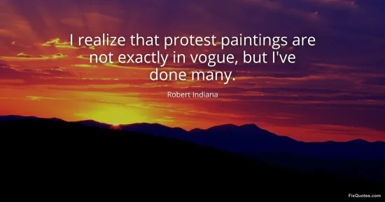 Indiana, Robert. "I realize that protest paintings are not exactly in vogue, but I've done many." FixQuotes. January 15, 2026. https://fixquotes.com/quotes/i-realize-that-protest-paintings-are-not-exactly-120149/.