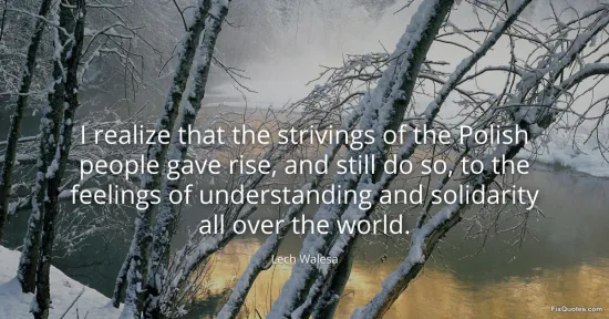 Walesa, Lech. "I realize that the strivings of the Polish people gave rise, and still do so, to the feelings of understanding and solidarity all over the world." FixQuotes. January 16, 2026. https://fixquotes.com/quotes/i-realize-that-the-strivings-of-the-polish-people-93344/.