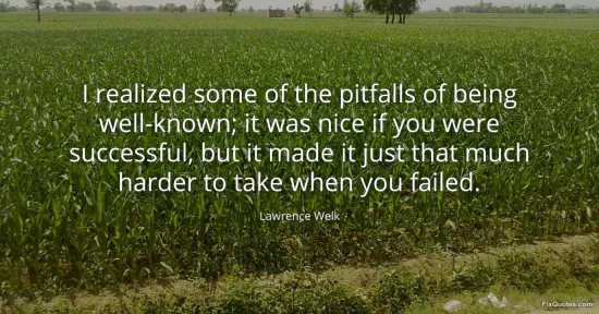 Welk, Lawrence. (2026, January 17). I realized some of the pitfalls of being well-known; it was nice if you were successful, but it made it just that much harder to take when you failed. FixQuotes. https://fixquotes.com/quotes/i-realized-some-of-the-pitfalls-of-being-56151/