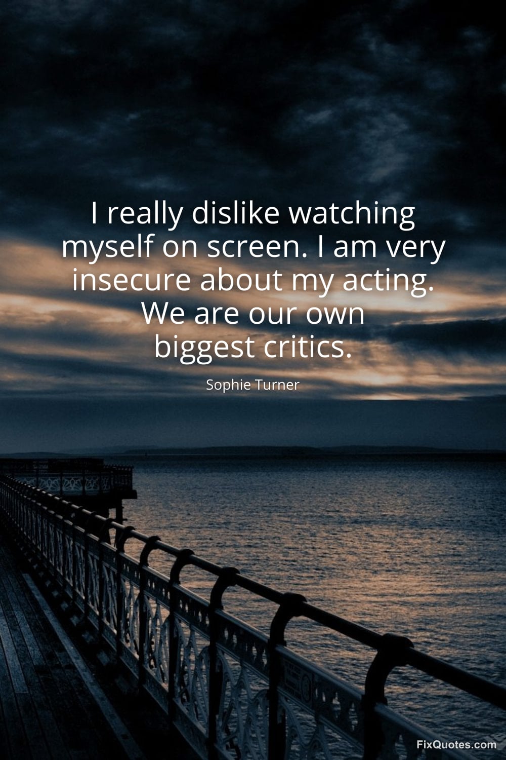 Turner, Sophie. (2026, January 15). I really dislike watching myself on screen. I am very insecure about my acting. We are our own biggest critics. FixQuotes. https://fixquotes.com/quotes/i-really-dislike-watching-myself-on-screen-i-am-173071/
