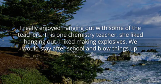 "I really enjoyed hanging out with some of the teachers. This one chemistry teacher, she liked hanging out. I liked making explosives. We would stay after school and blow things up"