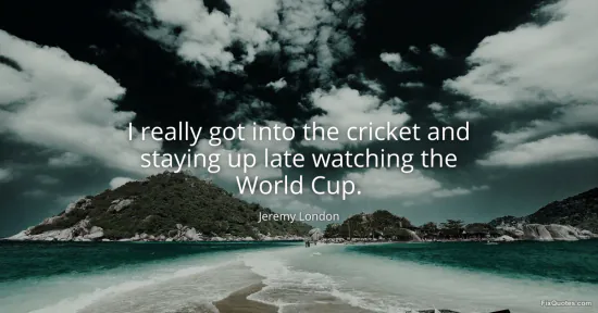 London, Jeremy. (2026, January 17). I really got into the cricket and staying up late watching the World Cup. FixQuotes. https://fixquotes.com/quotes/i-really-got-into-the-cricket-and-staying-up-late-55804/