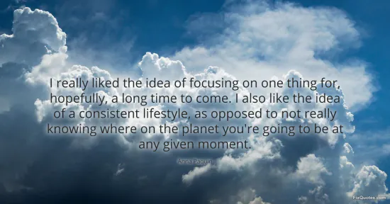 "I really liked the idea of focusing on one thing for, hopefully, a long time to come. I also like the idea of a consistent lifestyle, as opposed to not really knowing where on the planet you're going to be at any given moment." FixQuotes, 17 Jan. 2026, https://fixquotes.com/quotes/i-really-liked-the-idea-of-focusing-on-one-thing-42534/. Accessed 26 Feb. 2026.