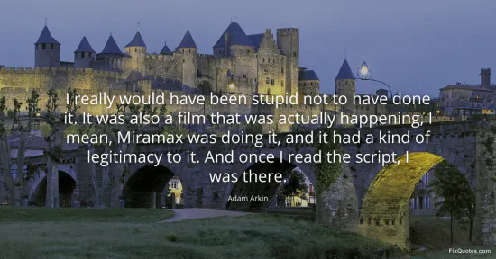 Arkin, Adam. (2026, January 17). I really would have been stupid not to have done it. It was also a film that was actually happening, I mean, Miramax was doing it, and it had a kind of legitimacy to it. And once I read the script, I was there. FixQuotes. https://fixquotes.com/quotes/i-really-would-have-been-stupid-not-to-have-done-40640/