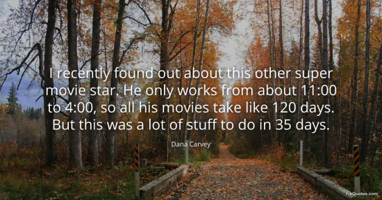 Carvey, Dana. "I recently found out about this other super movie star. He only works from about 11:00 to 4:00, so all his movies take like 120 days. But this was a lot of stuff to do in 35 days." FixQuotes. January 15, 2026. https://fixquotes.com/quotes/i-recently-found-out-about-this-other-super-movie-158042/.