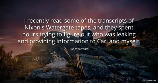 Woodward, Bob. "I recently read some of the transcripts of Nixon's Watergate tapes, and they spent hours trying to figure out who was leaking and providing information to Carl and myself." FixQuotes. January 17, 2026. https://fixquotes.com/quotes/i-recently-read-some-of-the-transcripts-of-nixons-45518/.