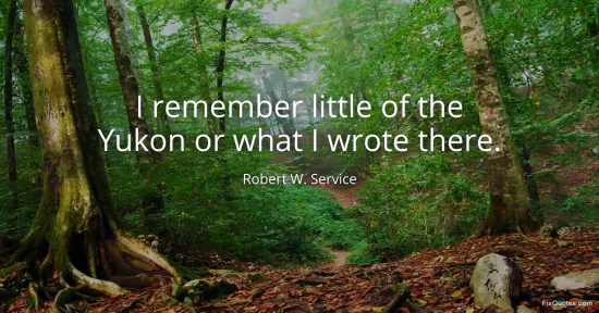 Service, Robert W. "I remember little of the Yukon or what I wrote there." FixQuotes. January 18, 2026. https://fixquotes.com/quotes/i-remember-little-of-the-yukon-or-what-i-wrote-21002/.