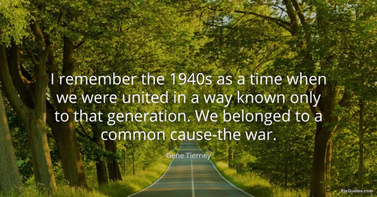 Tierney, Gene. (2026, January 15). I remember the 1940s as a time when we were united in a way known only to that generation. We belonged to a common cause-the war. FixQuotes. https://fixquotes.com/quotes/i-remember-the-1940s-as-a-time-when-we-were-146458/