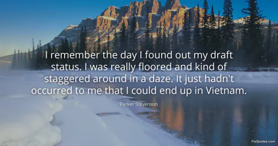 Stevenson, Parker. "I remember the day I found out my draft status. I was really floored and kind of staggered around in a daze. It just hadn't occurred to me that I could end up in Vietnam." FixQuotes. January 15, 2026. https://fixquotes.com/quotes/i-remember-the-day-i-found-out-my-draft-status-i-90114/.