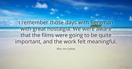 Sydow, Max von. "I remember those days with Bergman with great nostalgia. We were aware that the films were going to be quite important, and the work felt meaningful." FixQuotes. January 15, 2026. https://fixquotes.com/quotes/i-remember-those-days-with-bergman-with-great-155605/.