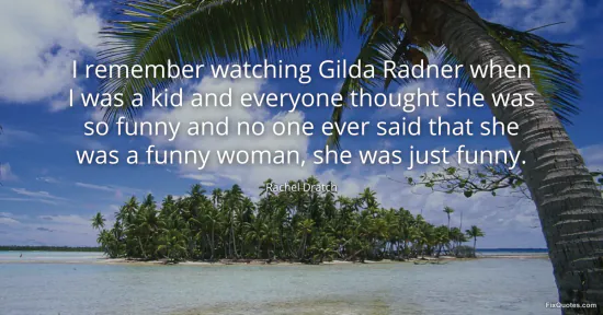 Dratch, Rachel. "I remember watching Gilda Radner when I was a kid and everyone thought she was so funny and no one ever said that she was a funny woman, she was just funny." FixQuotes. January 16, 2026. https://fixquotes.com/quotes/i-remember-watching-gilda-radner-when-i-was-a-kid-89748/.
