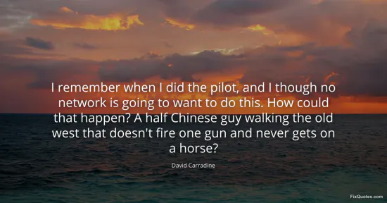 Carradine is letting you in on the little miracle behind Kung Fu: a network TV show that, on paper, should have died in the conference room. The line is built like a pitch meeting autopsy. He lists the “problems” the way an executive would, stacking them until the premise sounds impossible: “half Chinese,” “old west,” “doesn’t fire one gun,” “never gets on a horse.” Each clause is a quiet jab at what America supposedly required from its frontier myths - whiteness, violence, and the iconic props that reassure viewers they’re watching a Western.