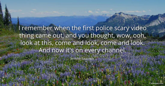 Saunders, Jennifer. "I remember when the first police scary video thing came out, and you thought, wow, ooh, look at this, come and look, come and look. And now it's on every channel." FixQuotes. Accessed February 3, 2026. https://fixquotes.com/quotes/i-remember-when-the-first-police-scary-video-146476/.