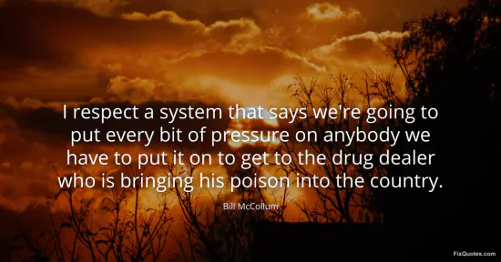 McCollum, Bill. (2026, January 17). I respect a system that says we're going to put every bit of pressure on anybody we have to put it on to get to the drug dealer who is bringing his poison into the country. FixQuotes. https://fixquotes.com/quotes/i-respect-a-system-that-says-were-going-to-put-39826/