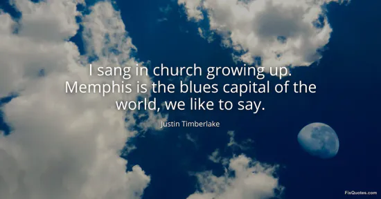 Timberlake, Justin. (2026, January 16). I sang in church growing up. Memphis is the blues capital of the world, we like to say. FixQuotes. https://fixquotes.com/quotes/i-sang-in-church-growing-up-memphis-is-the-blues-103290/