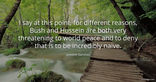 Garofalo, Janeane. (2026, January 17). I say at this point, for different reasons, Bush and Hussein are both very threatening to world peace and to deny that is to be incredibly naive. FixQuotes. https://fixquotes.com/quotes/i-say-at-this-point-for-different-reasons-bush-79914/