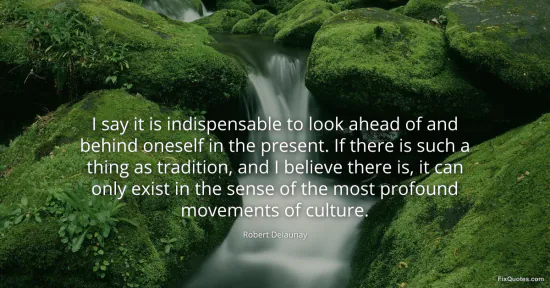 Delaunay, Robert. "I say it is indispensable to look ahead of and behind oneself in the present. If there is such a thing as tradition, and I believe there is, it can only exist in the sense of the most profound movements of culture." FixQuotes. January 16, 2026. https://fixquotes.com/quotes/i-say-it-is-indispensable-to-look-ahead-of-and-116235/.