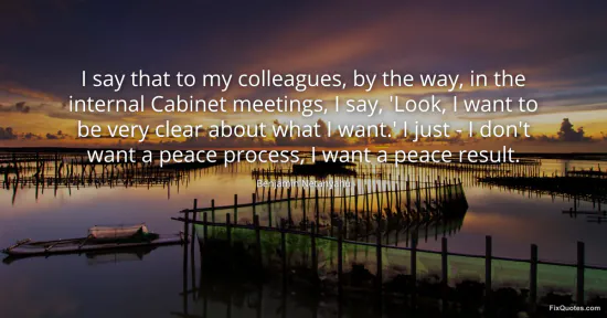 Netanyahu, Benjamin. (2026, January 17). I say that to my colleagues, by the way, in the internal Cabinet meetings, I say, 'Look, I want to be very clear about what I want.' I just - I don't want a peace process, I want a peace result. FixQuotes. https://fixquotes.com/quotes/i-say-that-to-my-colleagues-by-the-way-in-the-74845/