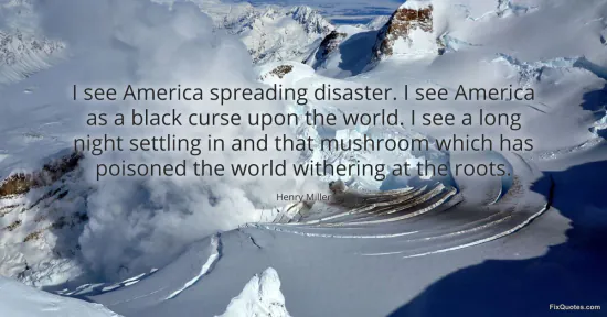 Miller, Henry. (2026, February 9). I see America spreading disaster. I see America as a black curse upon the world. I see a long night settling in and that mushroom which has poisoned the world withering at the roots. FixQuotes. https://fixquotes.com/quotes/i-see-america-spreading-disaster-i-see-america-as-28837/