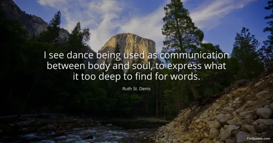 Dance, for Ruth St. Denis, isn`t entertainment so much as a private language made public. Her phrasing turns movement into a kind of relay system: the body transmits, the soul receives, and the audience gets to overhear the exchange. That`s a bold claim from a dancer in the early 20th century, when modern dance was still fighting for legitimacy against ballet`s strict hierarchies and vaudeville`s commercial churn. St. Denis is staking out dance as serious art by arguing it can carry meanings words can`t reliably hold.