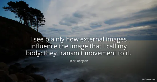 Bergson, Henri. (2026, January 18). I see plainly how external images influence the image that I call my body: they transmit movement to it. FixQuotes. https://fixquotes.com/quotes/i-see-plainly-how-external-images-influence-the-2640/
