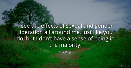 Bright, Susie. (2026, January 15). I see the effects of sexual and gender liberation all around me, just like you do, but I don't have a sense of being in the majority. FixQuotes. https://fixquotes.com/quotes/i-see-the-effects-of-sexual-and-gender-liberation-83873/