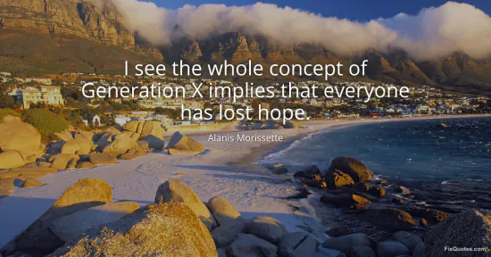 Morissette, Alanis. "I see the whole concept of Generation X implies that everyone has lost hope." FixQuotes. January 16, 2026. https://fixquotes.com/quotes/i-see-the-whole-concept-of-generation-x-implies-138430/.
