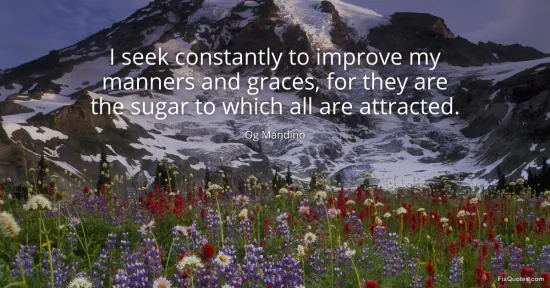 Mandino, Og. "I seek constantly to improve my manners and graces, for they are the sugar to which all are attracted." FixQuotes. January 15, 2026. https://fixquotes.com/quotes/i-seek-constantly-to-improve-my-manners-and-1088/.