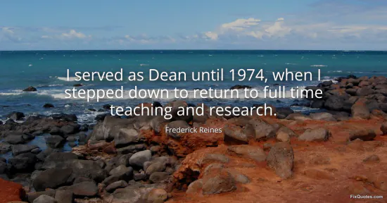 "I served as Dean until 1974, when I stepped down to return to full time teaching and research"