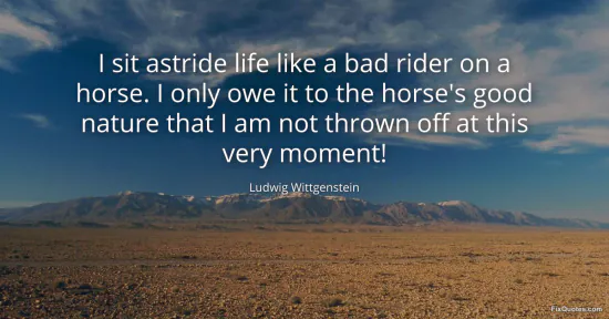 Wittgenstein, Ludwig. (2026, February 20). I sit astride life like a bad rider on a horse. I only owe it to the horse's good nature that I am not thrown off at this very moment! FixQuotes. https://fixquotes.com/quotes/i-sit-astride-life-like-a-bad-rider-on-a-horse-i-590/