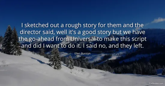 Burstyn, Ellen. (2026, January 17). I sketched out a rough story for them and the director said, well it's a good story but we have the go-ahead from Universal to make this script and did I want to do it. I said no, and they left. FixQuotes. https://fixquotes.com/quotes/i-sketched-out-a-rough-story-for-them-and-the-56116/