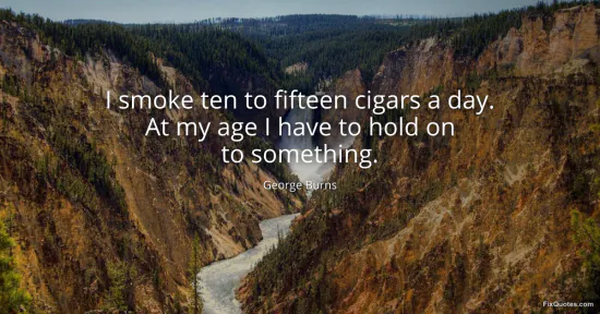 Burns, George. "I smoke ten to fifteen cigars a day. At my age I have to hold on to something." FixQuotes. January 14, 2026. https://fixquotes.com/quotes/i-smoke-ten-to-fifteen-cigars-a-day-at-my-age-i-31321/.