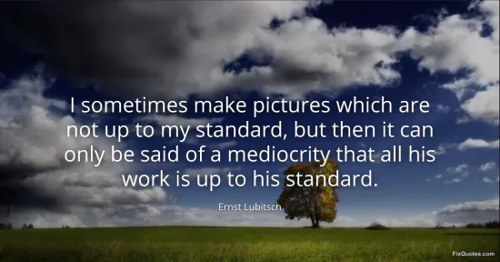 Lubitsch, Ernst. "I sometimes make pictures which are not up to my standard, but then it can only be said of a mediocrity that all his work is up to his standard." FixQuotes. January 16, 2026. https://fixquotes.com/quotes/i-sometimes-make-pictures-which-are-not-up-to-my-119438/.