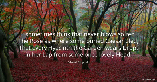 Fitzgerald, Edward. (2026, January 15). I sometimes think that never blows so red The Rose as where some buried Caesar bled; That every Hyacinth the Garden wears Dropt in her Lap from some once lovely Head. FixQuotes. https://fixquotes.com/quotes/i-sometimes-think-that-never-blows-so-red-the-61066/