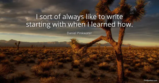 Pinkwater, Daniel. (2026, January 16). I sort of always like to write starting with when I learned how. FixQuotes. https://fixquotes.com/quotes/i-sort-of-always-like-to-write-starting-with-when-135523/